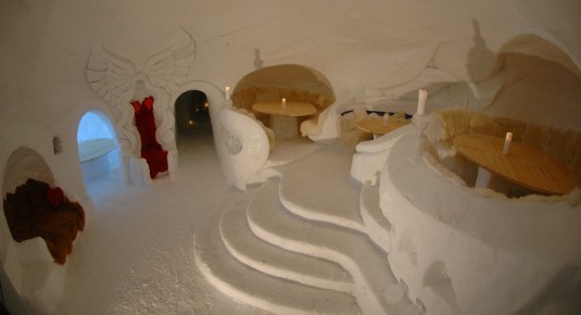 Circondato da uno scenario romantico e selvaggio, l’igloo village si trova in una splendida posizione con vista mozzafiato sulle montagne della Svizzera centrale. Questo hotel speciale è stato costruito interamente di ghiaccio e neve ad un altezza di 1800 m ed è decorato con opere d’arte di artisti locali ed internazionali.